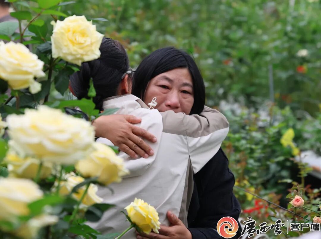 在云南省昆明市斗南国际花卉技术创新中心,黄爱娟与研究员蔡艳飞激动相拥。广西云-广西日报记者 徐天保 摄