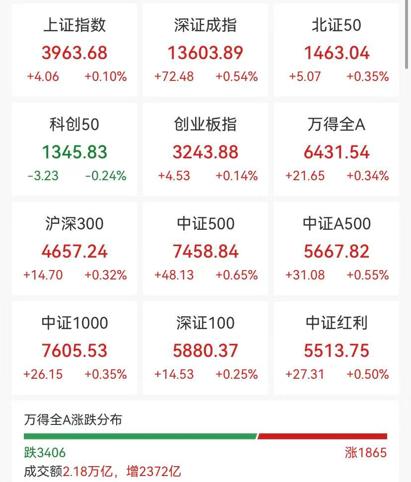 沪深两市成交额2.18万亿元,较上一个交易日放量2372亿元。全市场超3400只个股下跌。